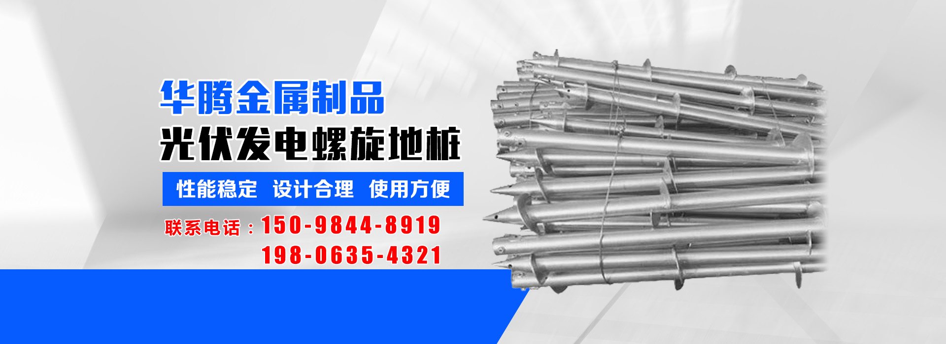 華騰金屬制品 (山東) 有限公司是螺旋地樁定制銷售公司,主營光伏螺旋地樁、光伏地樁等產(chǎn)品所生產(chǎn)的光伏螺旋地樁品種規(guī)格齊全,并可根據(jù)客戶的需求、圖紙、樣品研發(fā)產(chǎn)品。多年來我們以優(yōu)良的服務(wù)及高精端產(chǎn)品贏得了國內(nèi)外廣大客商的贊譽及肯定,光伏螺旋地樁等產(chǎn)品廣泛應(yīng)用于光伏太陽能電站樁基、房屋建筑樁基、...…